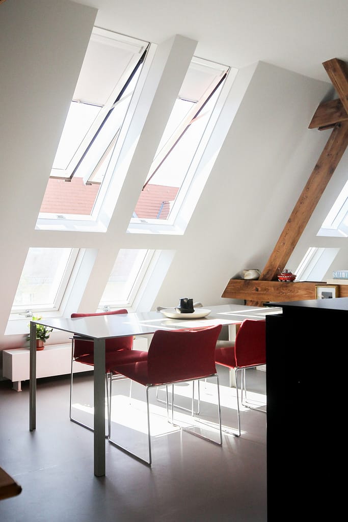 In a dormer loft conversion, natural light can enter through the dormer windows (vertical) as well as skylights. Additionally, for larger internal spaces, installing a Juliet balcony can further enhance the amount of light entering your loft.